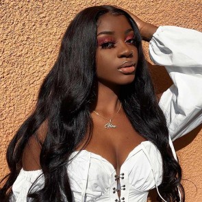 Vova Black Curly Wavy Brazilian Remy1 Hair Body Wave Lace Front