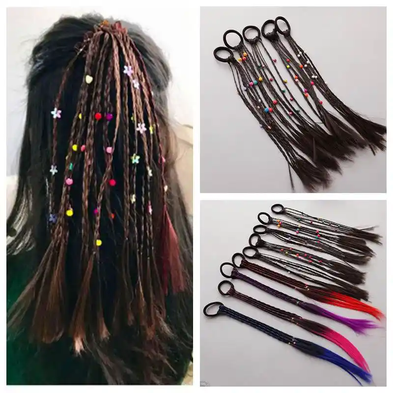 New Girls Colorful Wigs Ponytail Hair Ornament Headbands Rubber