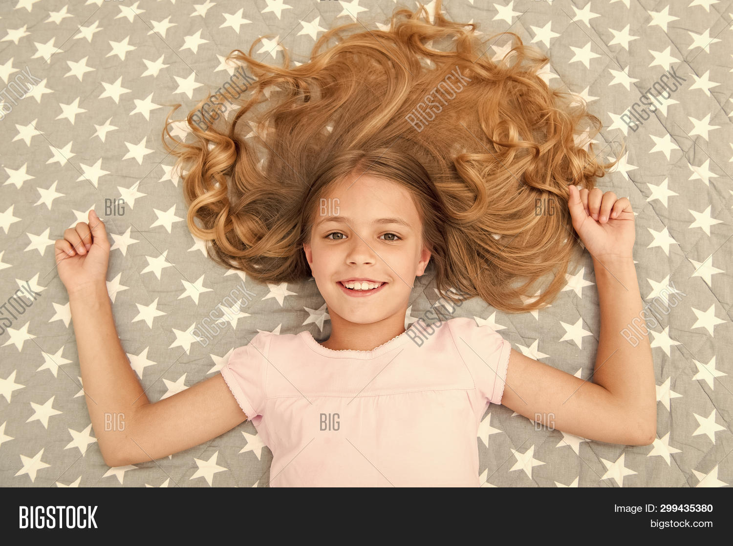 Girls With Long Curly Hair Lay On Bed Top View Children Perfect