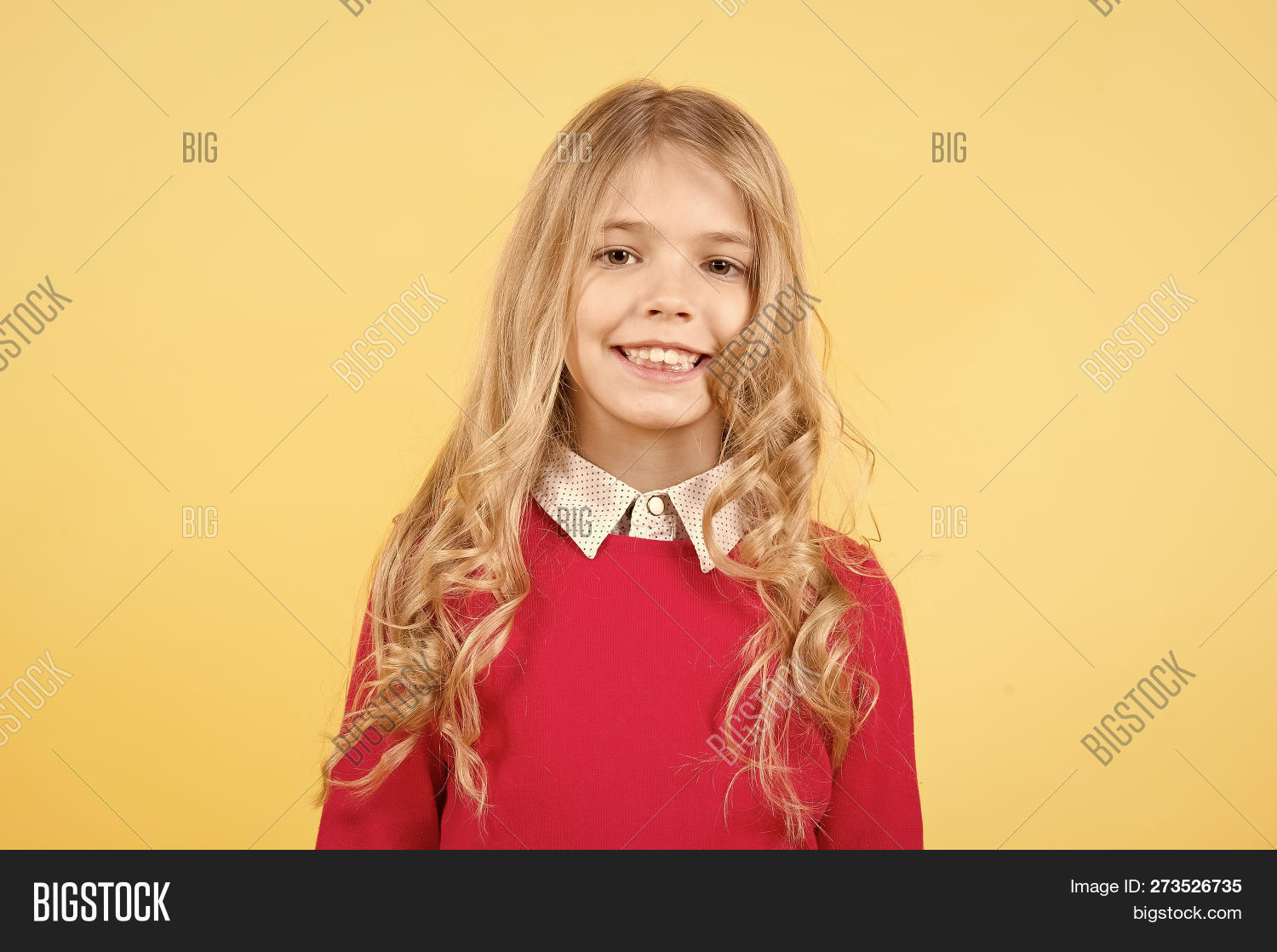 Charming Cutie Kid Girl Long Curly Hair Posing Cheerful Happy