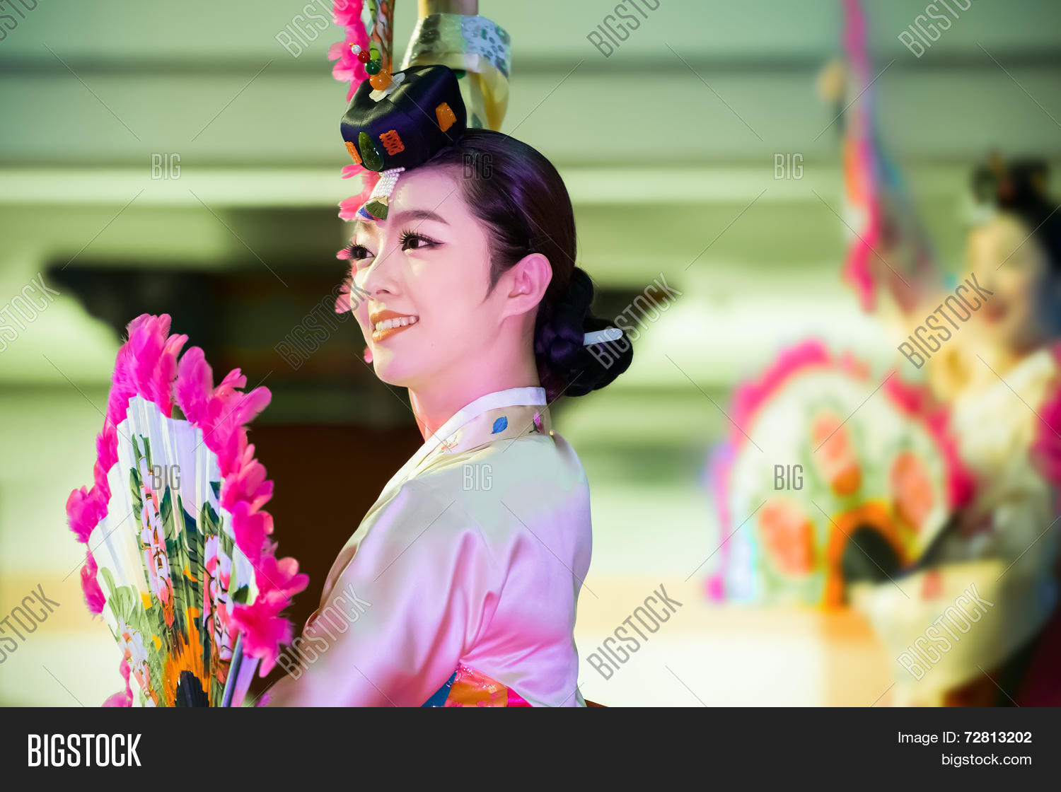Woman In Traditional Korean Costume Seoul South Korea Stock