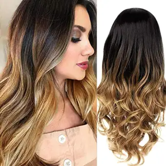 Mx Sexy Gradient Blonde Party Wigs Long Curly Hair Shopee