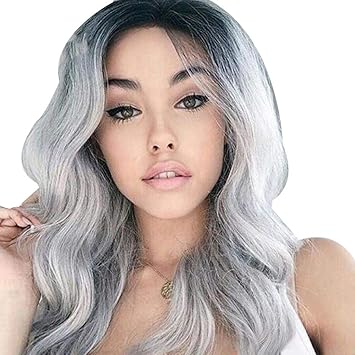 Sexy Women Long Hair Wigs Gradient Gray Party Wigs Long Curly Hair